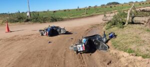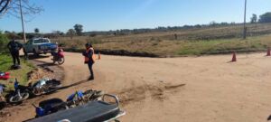 Siendo las 13:55 hs aproximadamente, Personal de Comisaría San José interviene a raíz de un accidente ocurrido en intersección de calles Ramírez y 2 de Abril, lugar donde colisionaron una motocicleta, marca Tibo, 110 cc, conducida por una ciudadana de 42 años y un motovehículo motomel, modelo blitz, guiada por una femenina de 34 años. Como consecuencia del impacto esta última resultó con lesiones de carácter graves (fractura de radio), en tanto la otra Mujer, lesiones de carácter leves.