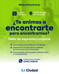 Desde el Área de Mujeres, Género y Diversidad invitamos a las mujeres de los barrios Santa Teresita y El Colorado a compartir un taller de expresión corporal.