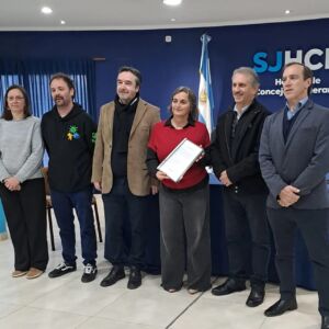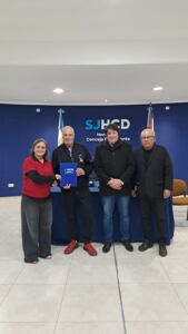 Acompañaron este pequeño acto, la Presidente del HCD, Mirta Pérez, la Secretaria, Diana Bes, la Secretaria Suplente, Ruth Sotter y los Concejales Cristián Berguñan y Miguel Cabrera.