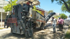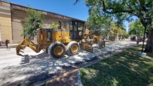 San José: Se trabaja en la repavimentación de calles perimetrales a plaza Urquiza