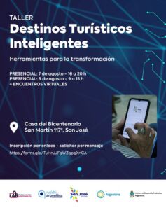 La Secretaría de Turismo de San José en conjunto con la Red de Destinos Turísticos Inteligentes de Argentina (Red DTI-Ar) te invitan a participar del Taller “Destinos Turísticos Inteligentes: Herramientas para la transformación”.