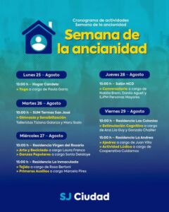 Del 25 al 29 agosto el área municipal de Personas Adultas Mayores dependiente de la Secretaría de Salud y Bienestar Social, conmemorará la semana de la Ancianidad.