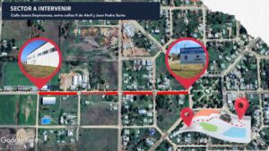 Cabe destacar que durante este año se ha trabajado intensamente en la construcción de veredas en los accesos Norte y Sur (calle 22 de Noviembre) —una de las cuales continúa en ejecución— y en el tramo mencionado de la calle Pedro Bourlot.