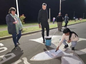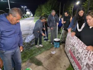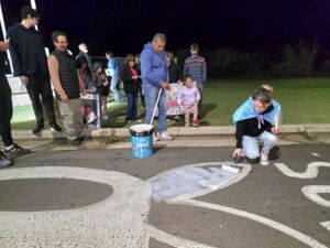 La actividad comenzó en el ingreso a la localidad, sobre Boulevard Ramírez, donde se realizó la pintura de un pañuelo simbólico como intervención colectiva. Luego, los presentes caminaron hacia la bicisenda de calle Progreso, continuando con las intervenciones, para finalizar en el Paseo de la Memoria, junto al Monumento a la Lata.