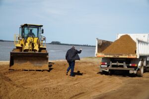La Municipalidad de Colón lleva a cabo con personal y maquinaria propia, el retiro de arena de la zona del espigón para reutilizarla en diversos sectores