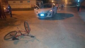 A las 19:20 Horas de la víspera personal policial intervino en accidente de tránsito ocurrido en calle Paso de los Andes e Irigoyen, protagonizado por un ciudadano de 29 años de edad, domiciliado en la ciudad homónima, quien circulaba por calle Irigoyen en sentido Este-Oeste y al llegar a la intersección con Paso de los Andes, por causas a establecer colisiona con una bicicleta, tipo Mountain Bike, conducida por un chico menor de edad (11) , domiciliado en San José. El niño fue trasladado al nosocomio local, siendo examinado por médico de turno, resultó con lesiones de carácter leves. Se iniciaron Actuaciones Simples policiales.