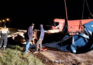 Un camión que transportaba madera volcó esta madrugada, cerca de las 2 horas, en el kilómetro 158 de la Autovía Artigas, en cercanías de San José.