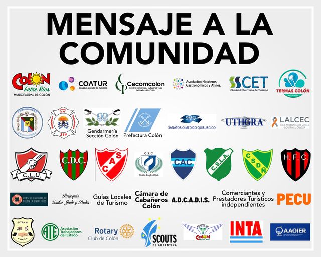 COLÓN – MENSAJE A LA COMUNIDAD DEL MUNICIPIO DE COLÓN CON LA ADHESIÓN DE VARIAS INSTITUCIONES INTERMEDIAS