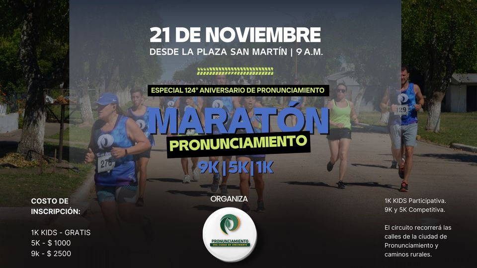 02/11/22 Se viene la maratón de Pronunciamiento 9K y 5K (competitiva) y 1K Kids (participativa). Lunes 21 de noviembre desde las 9 a.m. [...]