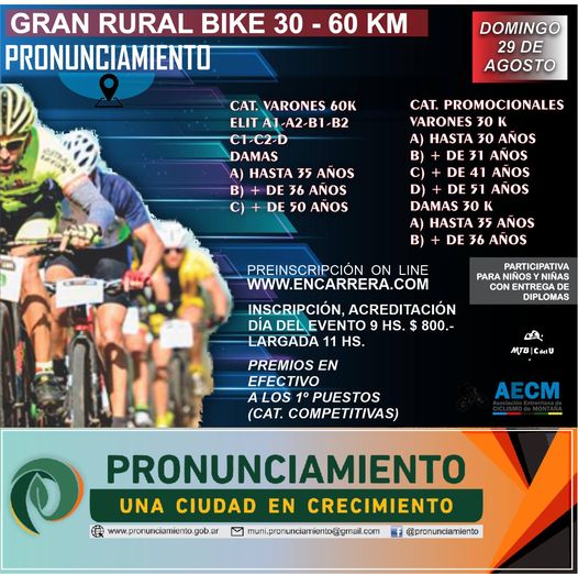 PRONUNCIAMIENTO Domingo 29 de Agosto | Gran Rural Bike 30 – 60 Km.