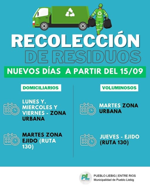 Marcelo Benitez2025-10-13T17:00:50-03:00Liebig, 14 de septiembre de 2025 Nuevos días de recolección de residuos a partir del 15 de septiembre La Municipalidad de Pueblo Liebig [...]