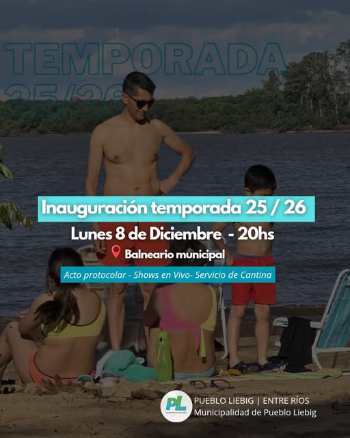 Marcelo Benitez2026-01-05T12:41:47-03:00Liebig, 3 de diciembre de 2025 PUEBLO LIEBIG INAUGURA SU TEMPORADA DE VERANO 2025/2026 La Municipalidad de Pueblo Liebig invita a la comunidad [...]