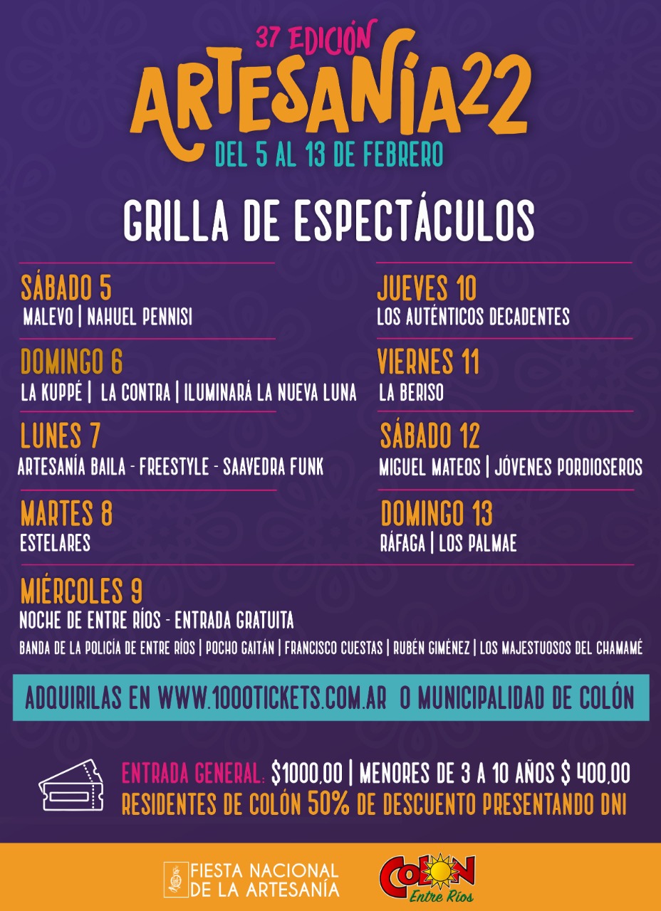 COLÓN – Vía On-Line o en la Municipalidad Ya están a la venta entradas y plateas para la Artesanía 2022 de Colón