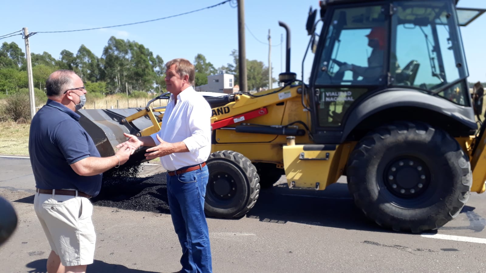 El senador Santa Cruz se hizo presente junto al Titular de Vialidad Nacional Daniel Koch, en el bacheo que lleva adelante esta repartición Nacional en Ruta Nacinal 130 a la altura del km 4