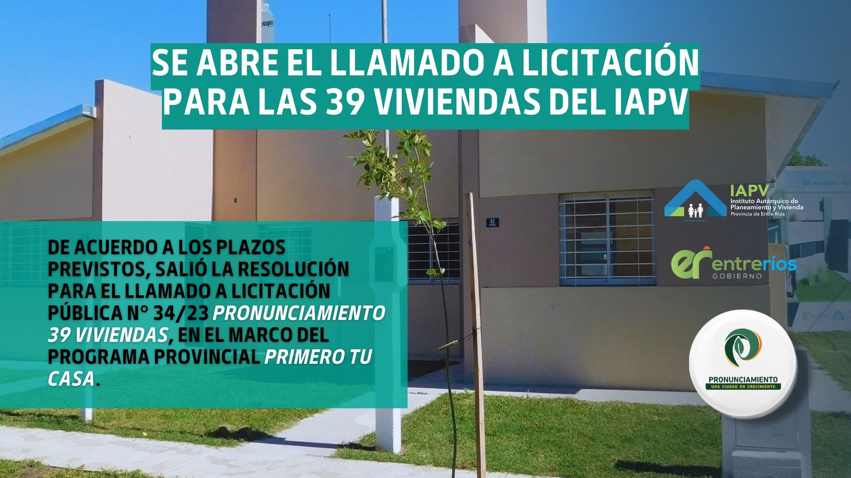 Pronunciamiento: Se abri贸 el llamado a licitaci贸n para las 39 viviendas