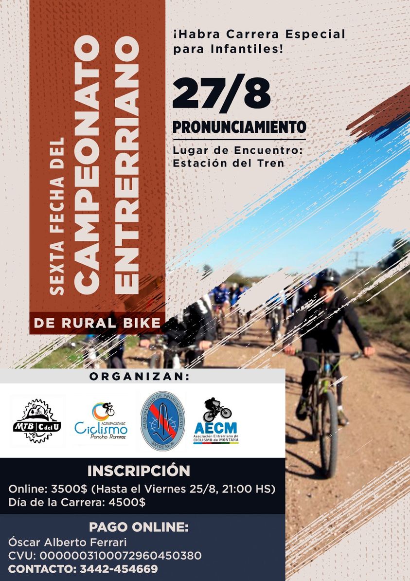 Marcelo Benitez2023-08-21T22:49:44-03:00Viernes 19 de agosto de 2023 Rally bike 2023 El ciclismo llega a Pronunciamiento Pronunciamiento ser谩 otra vez sede del Campeonato Entrerriano Rally [...]