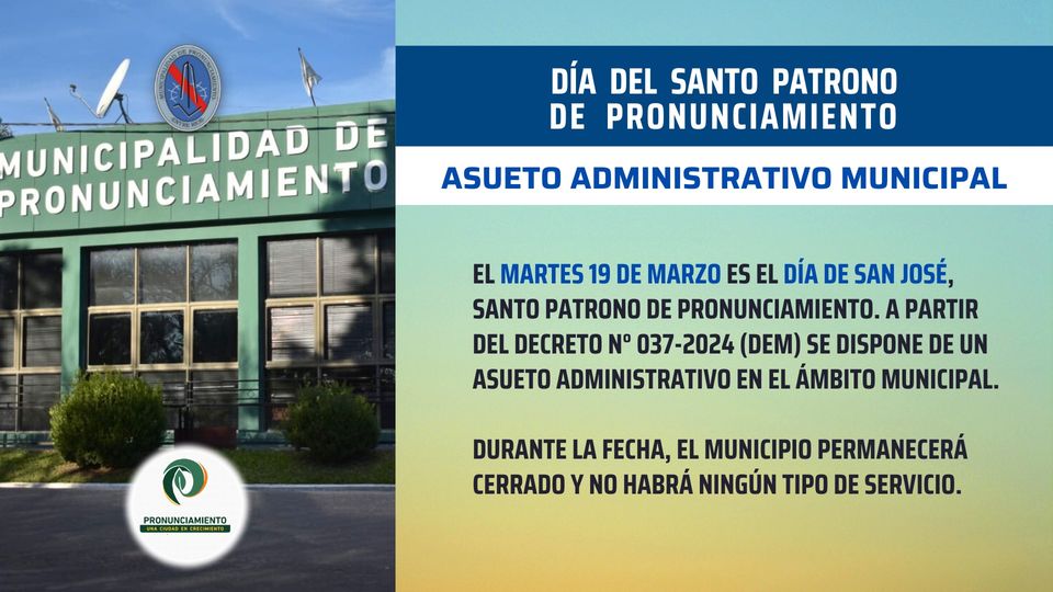 Día de San José – Asueto en la municipalidad de Pronunciamiento