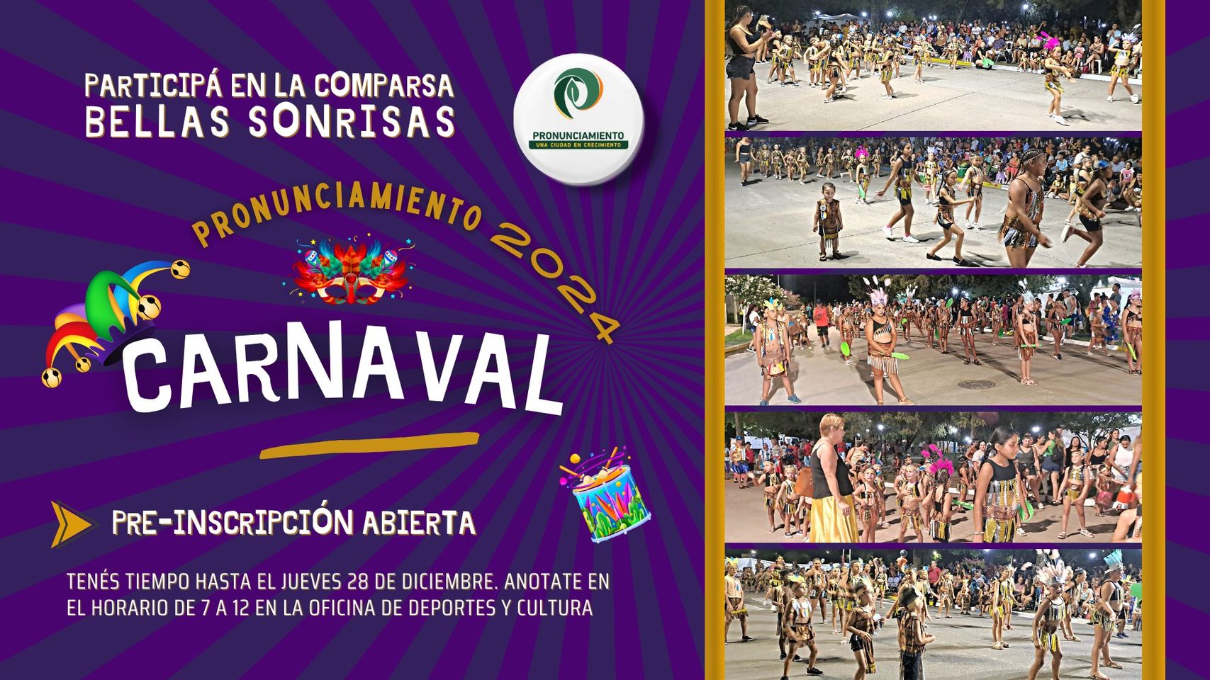 Pronunciamiento: Preinscripci贸n abierta para participar de la comparsa “Bellas Sonrisas”