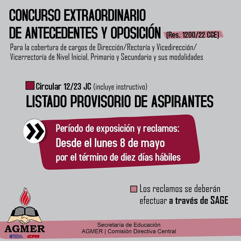 AGMER: Exposición de listados provisorios de aspirantes para el Concurso de Oposición