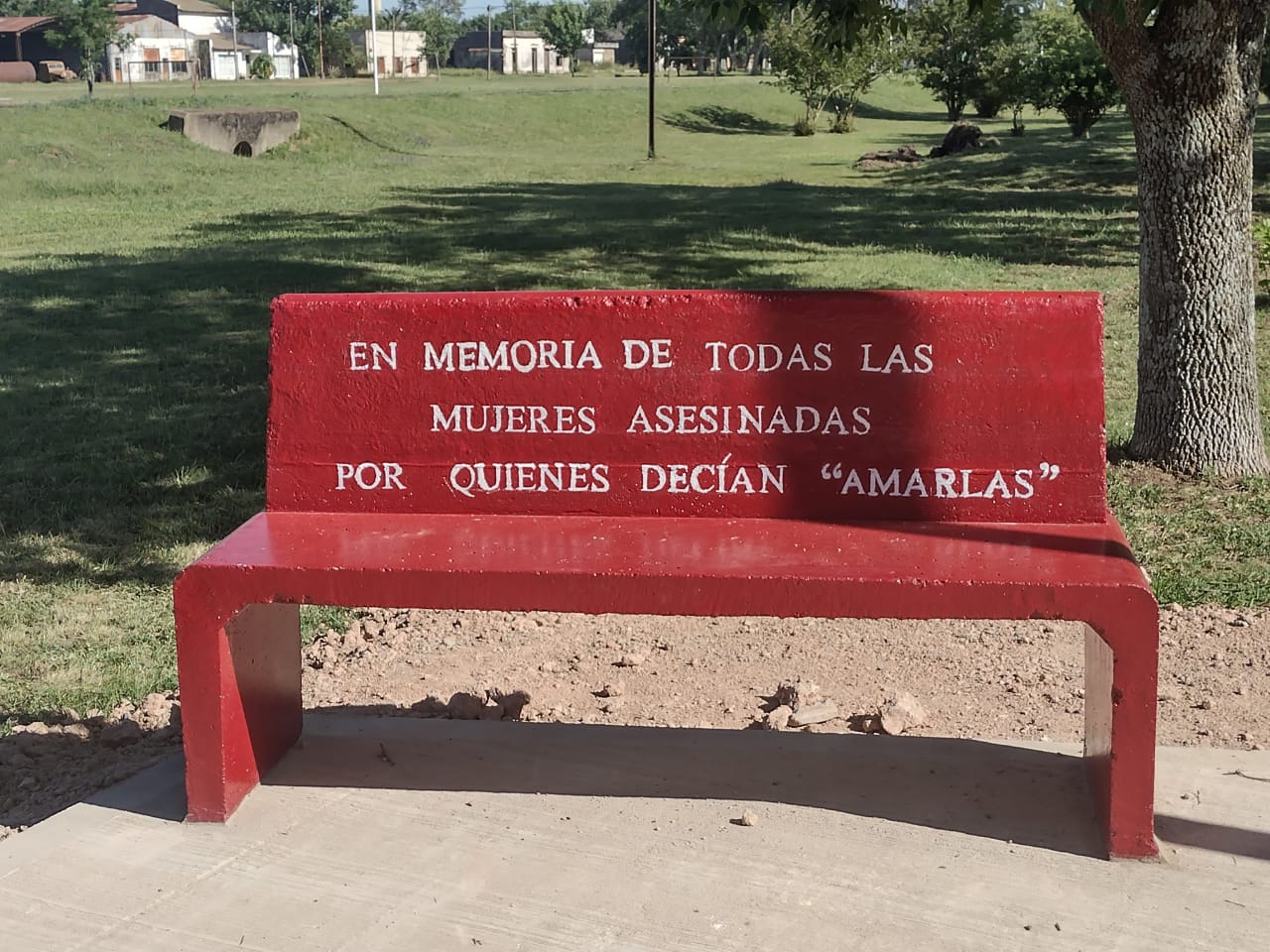 La Clarita: En el día internacional de la Eliminación de la Violencia contra la Mujer, acompañamos a alumnos y docentes de la Escuela Secundaria N°12 Francisco Ferreyra en la inauguración de un “banco rojo”.