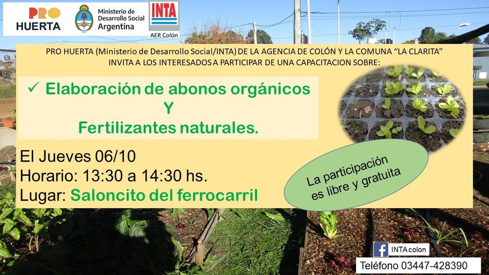 Marcelo Benitez2022-10-10T21:39:43-03:0010/10/22 En horas de la tardes, el equipo técnico de Inta Colón, brindo una capacitación sobre "Elaboración de abonos orgánicos y fertilizantes naturales" [...]
