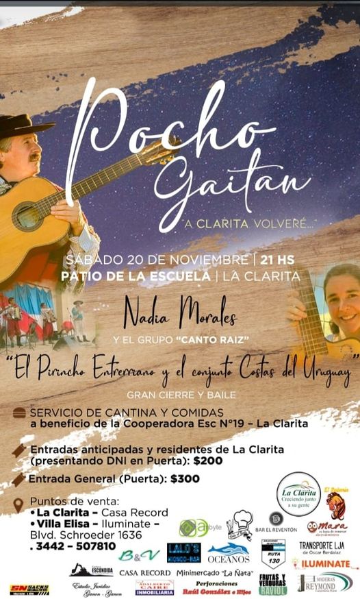 LA CLARITA – VOLVIERON LOS SHOW EN VIVO A LA LOCALIDAD CON LA PRESENCIA DE POCHO GAITÁN