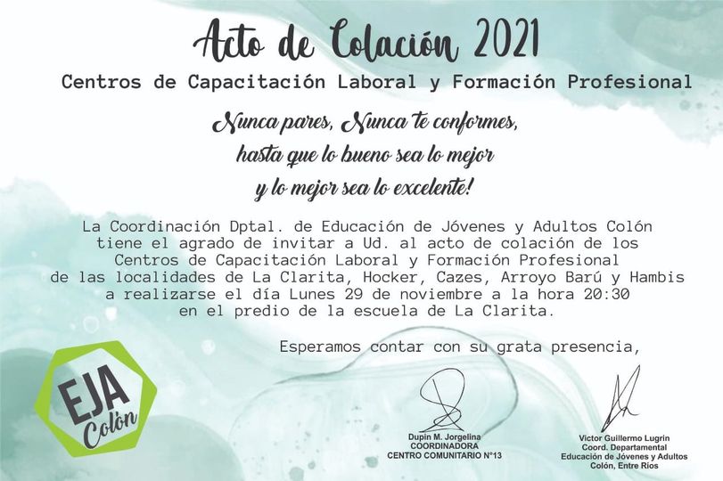27/11/21 Tenemos el privilegio de ser sede del Acto de Colación de Egresados 2020 y 2021 de los Centros de Capacitacion Laboral y [...]