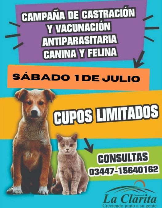 Marcelo Benitez2023-06-26T23:14:00-03:00Lunes 26 de junio de 2023 Campaña de de castración y vacunación en La Clarita NUEVAMENTE Campaña de de castración y vacunacion en [...]