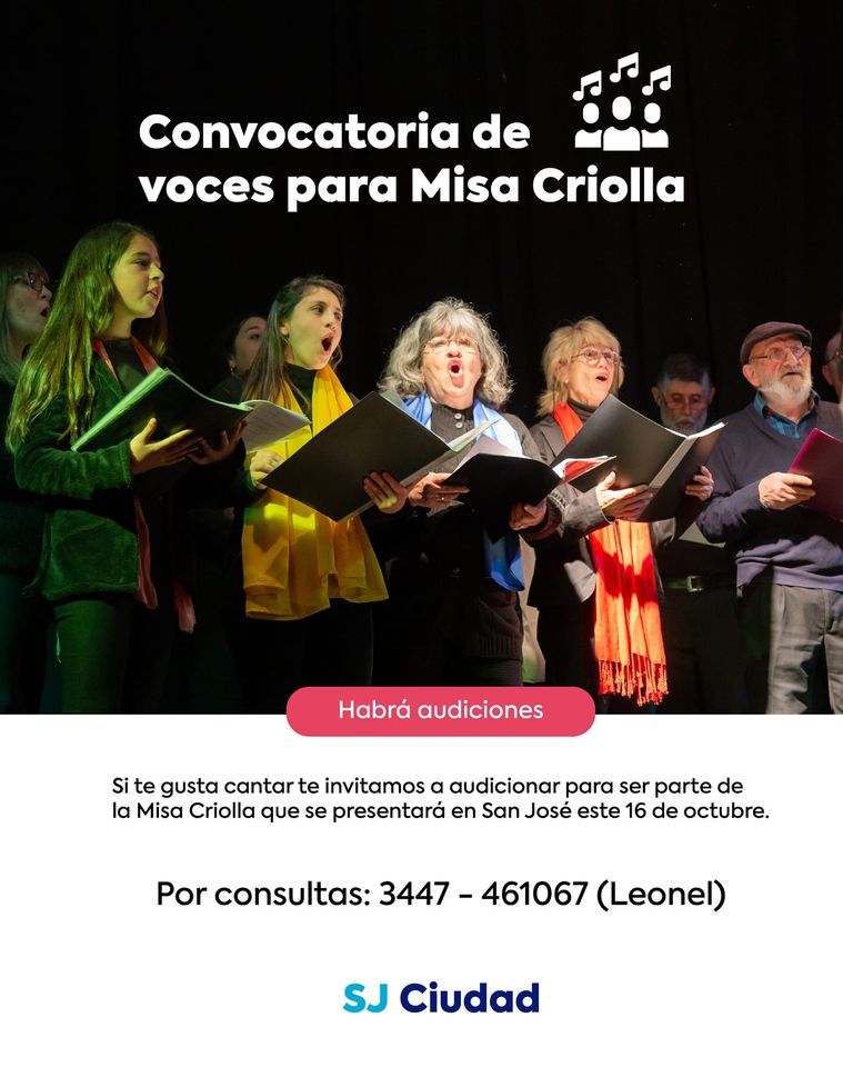 Marcelo Benitez2023-09-12T20:55:53-03:00Martes 12 de septiembre de 2023 San José: Convocatoria de voces para presentación de "La Misa Criolla" Si te gusta cantar podes hacer [...]