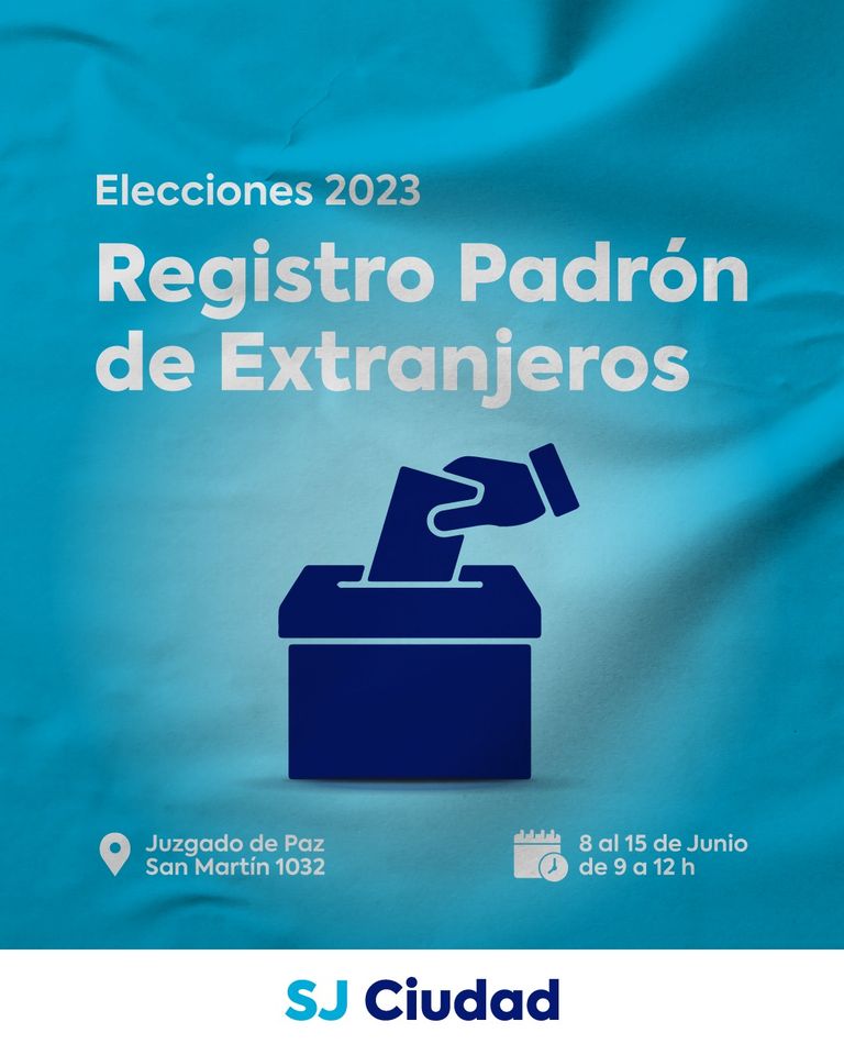 Marcelo Benitez2023-06-08T20:54:46-03:0007/06/23 San José: Elecciones 2023 - Registro Padrón de Extranjeros La Junta Empadronadora de Extranjeros de la ciudad de San José convoca a [...]