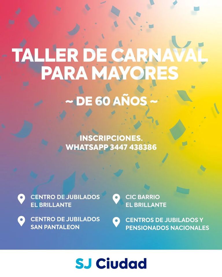Marcelo Benitez2023-02-01T00:25:31-03:0031/01/23 San José: Taller de carnaval para personas mayores de 60 años 𝗧𝗔𝗟𝗟𝗘𝗥 𝗗𝗘 𝗖𝗔𝗥𝗡𝗔𝗩𝗔𝗟 𝗣𝗔𝗥𝗔 𝗣𝗘𝗥𝗦𝗢𝗡𝗔𝗦 𝗠𝗔𝗬𝗢𝗥𝗘𝗦 𝗗𝗘 𝟲𝟬 𝗔𝗡̃𝗢𝗦 Te invitamos [...]