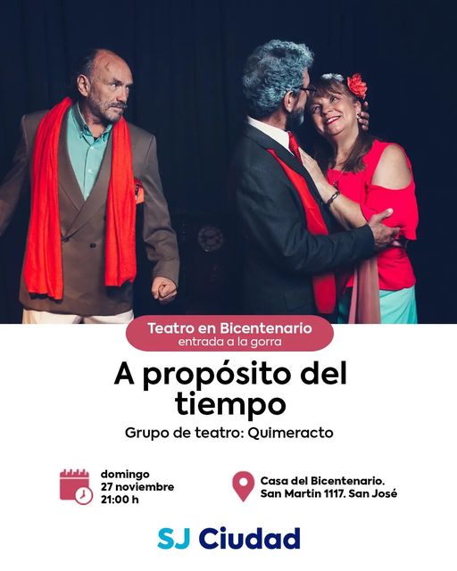 Este domingo 27 se estará presentando la obra A PROPÓSITO DEL TIEMPO en Casa del Bicentenario, San José.
