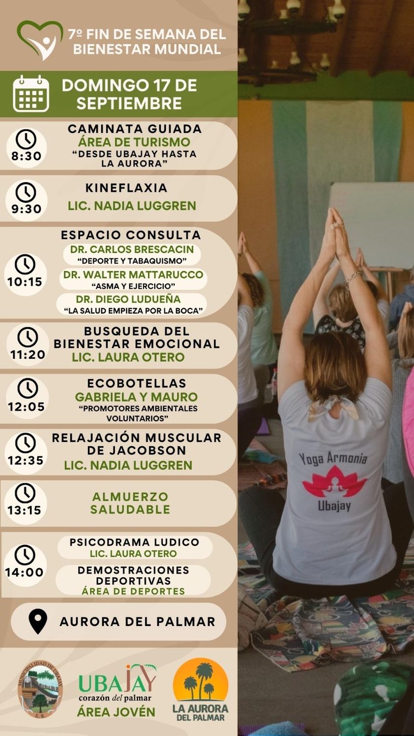 World Willness weekend. fin de semana mundial del bienestar el 17 de septiembre en Ubajay