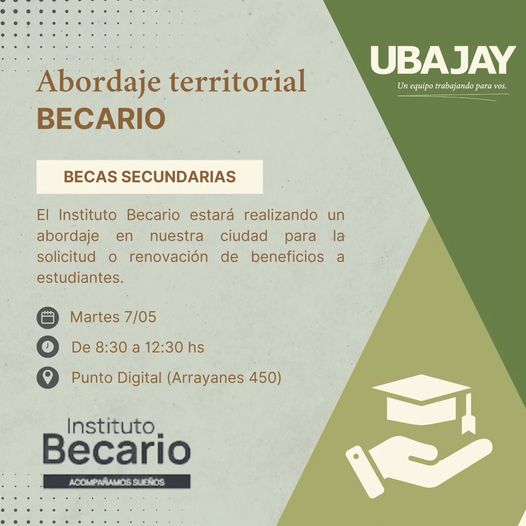 Marcelo Benitez2024-05-06T19:02:38-03:00Viernes 3 de mayo de 2024 EL BECARIO EN UBAJAY El Instituto Becario estará realizando un abordaje en nuestra ciudad para la solicitud [...]